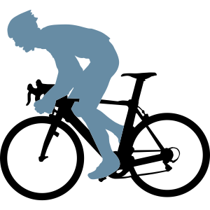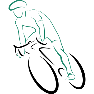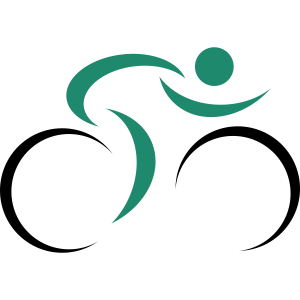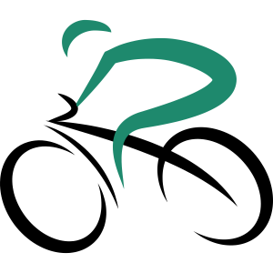 Un ciclista stilizzato in posizione aerodinamica su una bicicletta da corsa, circondato da ali colorate e linee di velocità, con il testo 'YOUR AI-LOGO' sotto.