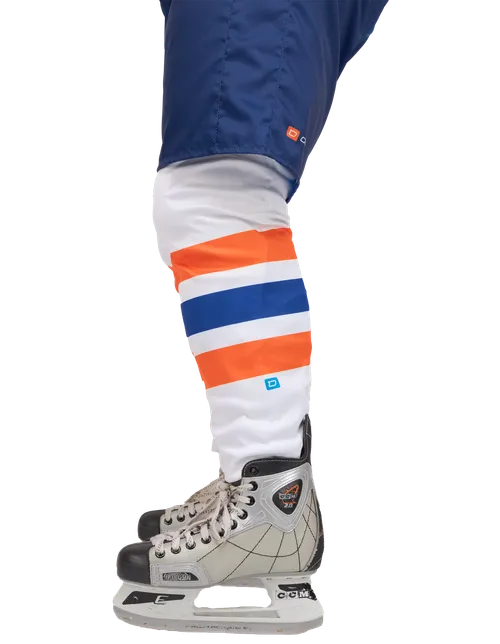 Calze da hockey completamente personalizzabili, realizzate in un tessuto tecnico robusto e in un taglio anatomico.